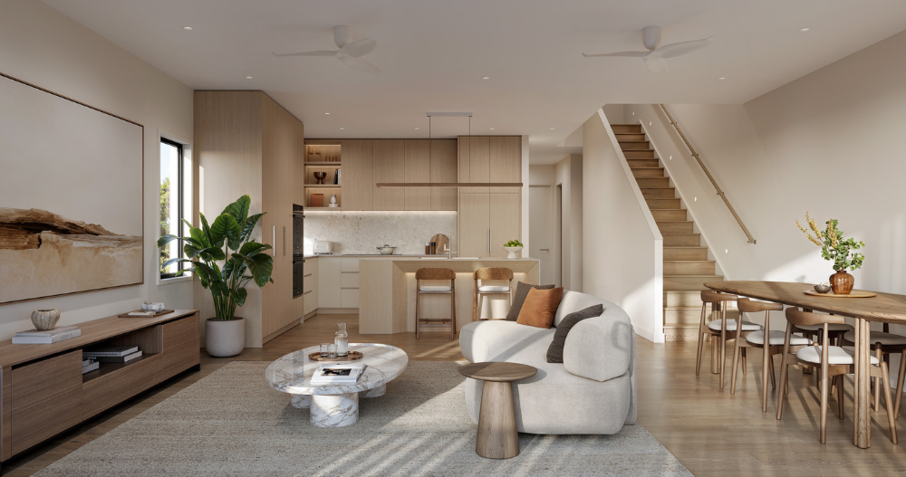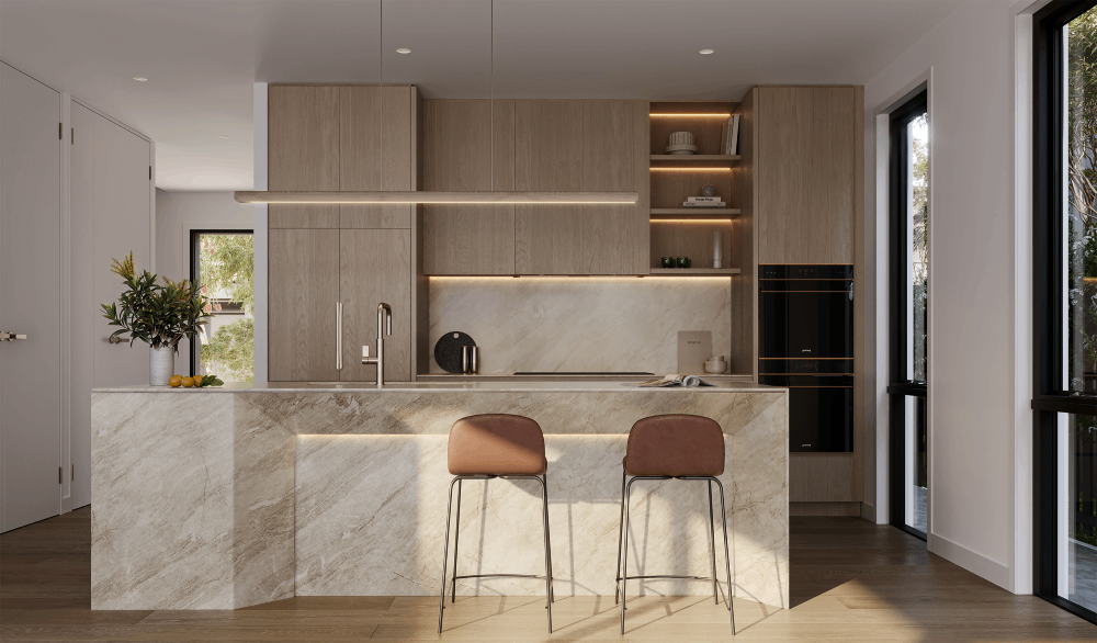 Homes at Highforest offer generous living spaces that draw nature indoors, enlivening your tree change in the city. The open plan kitchen and living area forms the heart of the home, a stylish backdrop to the ebb and flow of daily living.